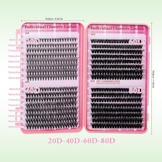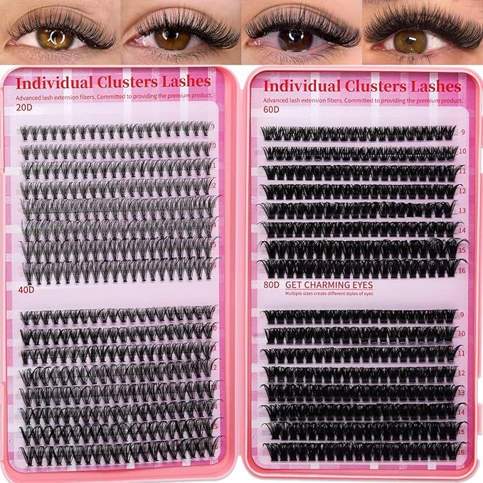 Lash Clusters 4 Style DIY Lashes Clusters Eyelash Clusters False Eyelashes Cluster Eyelash Extensions Wispy Lash Clusters Pestañas Postizas Naturales Soft Cluster Lashes(640pcs 20D+40D+60D+80D,9-16mm)