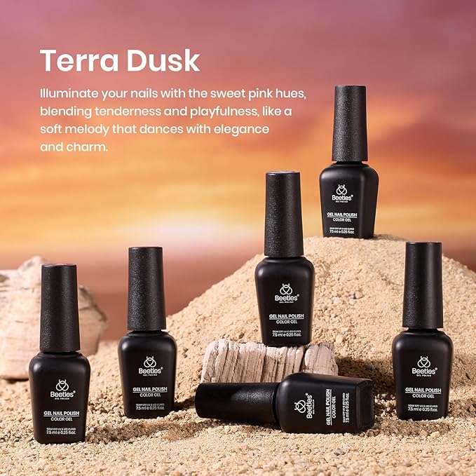 Beetles Gel Nail Polish Set – 6PCS Fall Winter Burgundy Purple Glitter Nude Plum Gold Gel Nail Polish Kit Soak Off UV LED Terra Dusk Colors DIY Home Salon Gift for Women