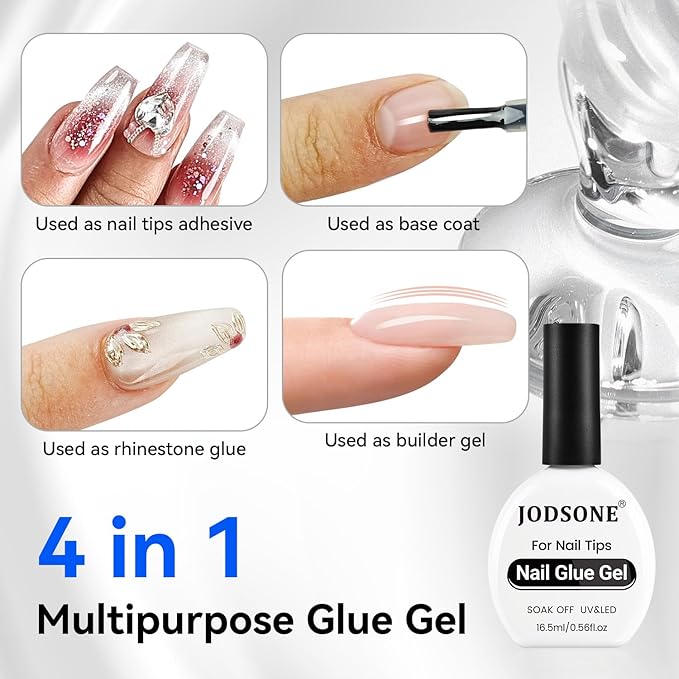 JODSONE 16.5ml Nail Glue Gel Clear and Long-Lasting Requires a Manicure Lamp to Cure for Attaching False Nails Repairing Broken Nails and Securing Decorations