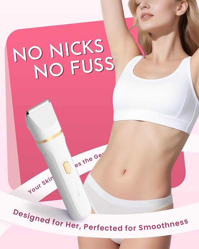- 【Smooth And Painless Shaving】Our bikini trimmer is featuring hypoallergenic soft delicate ceramic blades,gives you a precise and smooth hair-shaving experience without the discomfort of skin pulling, irritation, injuries, and pain.Plus, Goose Bumps caused by hair removal will be a past, even for sensitive skin.