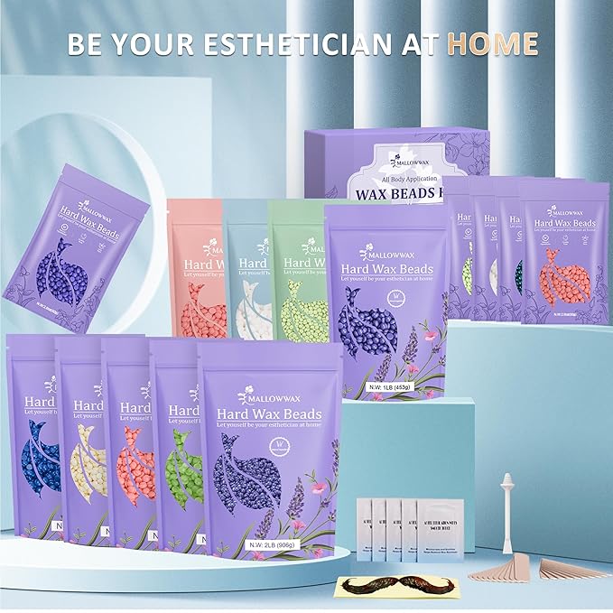 - Fast & Efficient Waxing for Large Areas: Mallowwax blue hard wax beads melt quickly and spread smoothly, making them perfect for legs, arms, chest, and back. The fast-drying formula reduces application time, ensuring a quicker and more efficient waxing session with fewer reapplications, ideal for busy individuals