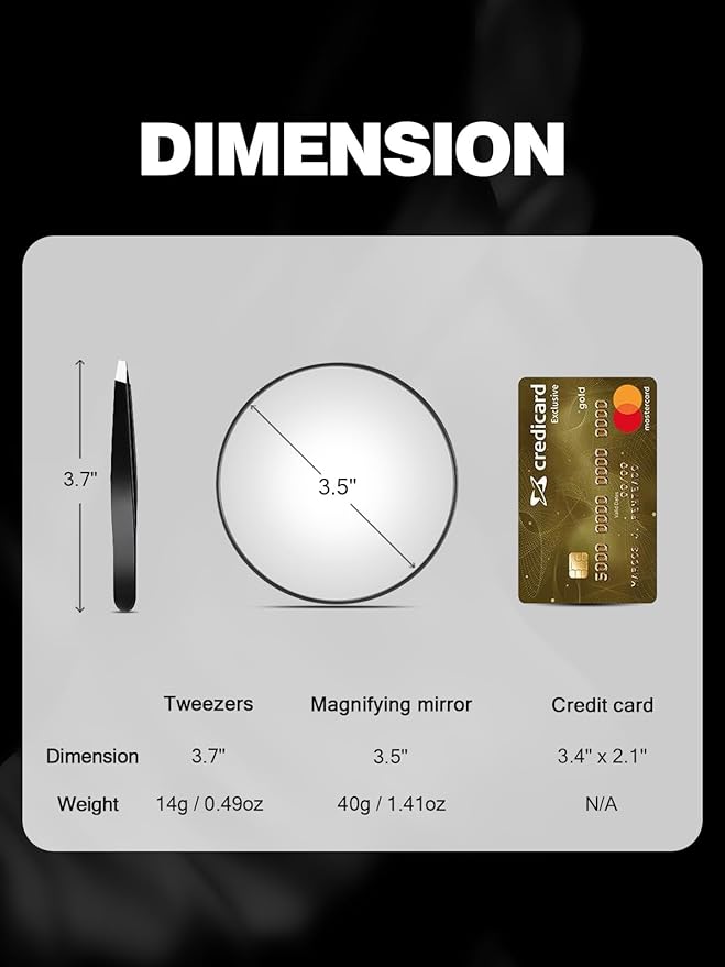 10X&40X Magnifying Mirrors with Suction Cups and 2 Tweezers Set, 3.5 inches Magnified Makeup Mirror, Black, 2PCS