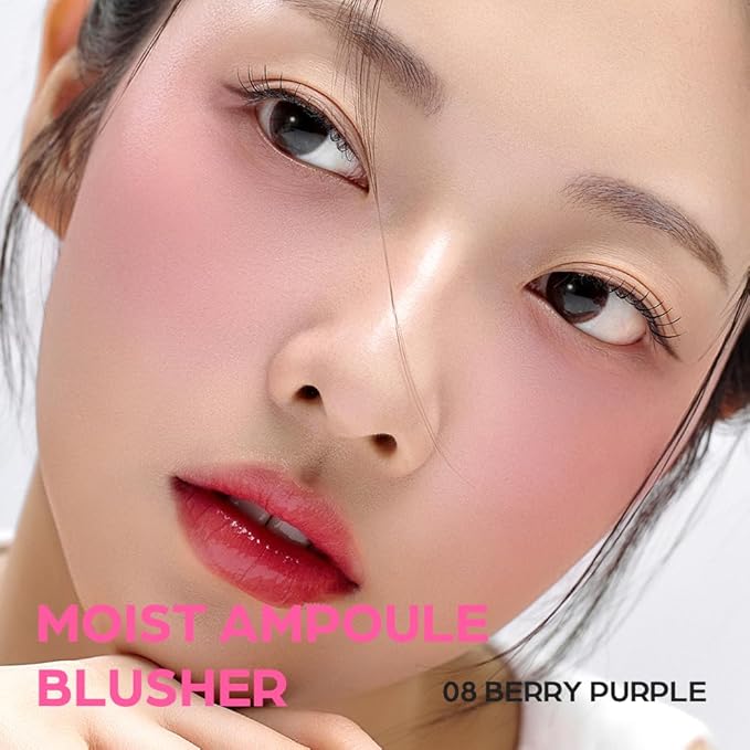 House of Hur Moist Ampoule Blusher with 50% Moisture Essence | Hydrating & Long-Lasting Blush | 0.33 fl. oz. (9 Shades) - Berry Purple