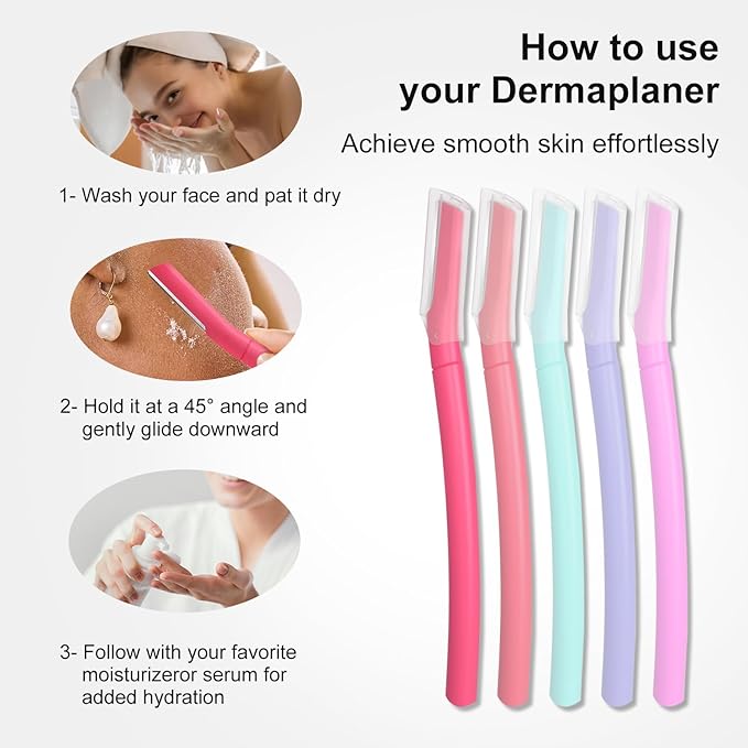 - Dermaplaning Tool with Microblades for Face: Effective facial exfoliation, gentle and safe on skin. Each facial razor features a sharp stainless steel blade with micro-guards to protect skin while you’re getting smooth. It's recommended to exchange the dermaplane blade every 3 to 4 weeks