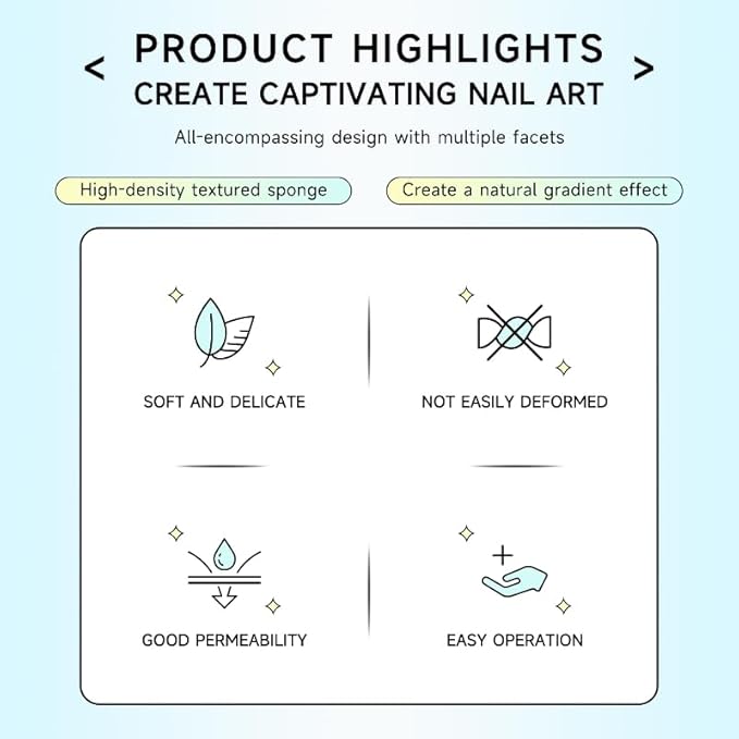 - [Nail ponges Multi-style free creation]:Compatible with Ombre Nails, French Manicure, two-tone stitching and other popular styles, one box unlock a variety of styles from simple to gorgeous, to meet personalized nail needs