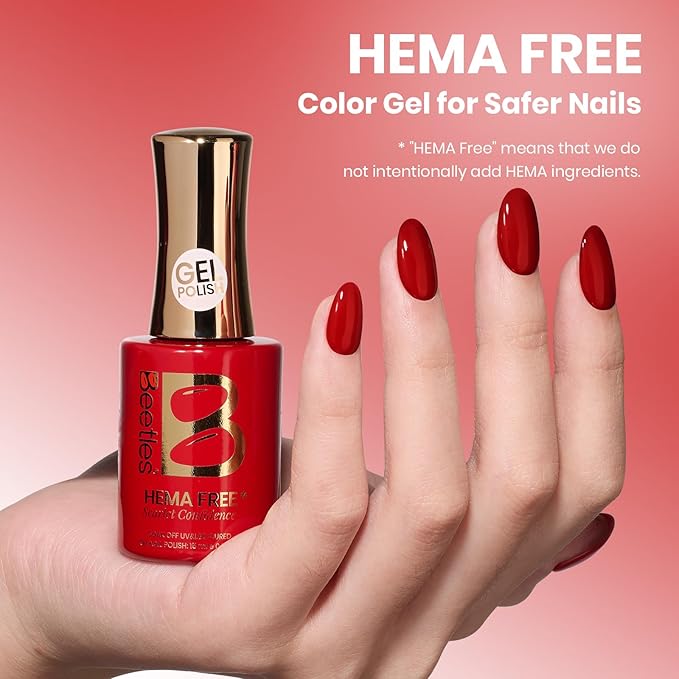 Beetles Red Gel Polish - Scarlet Confidence 15ML/0.51Fl Oz,Hema Free Red Gel Nail Polish, Same Color Same Bottle, Soak Off UV LED Lamp Nail Art, Long-Lasting Manicure Salon DIY Home Valentines Nails