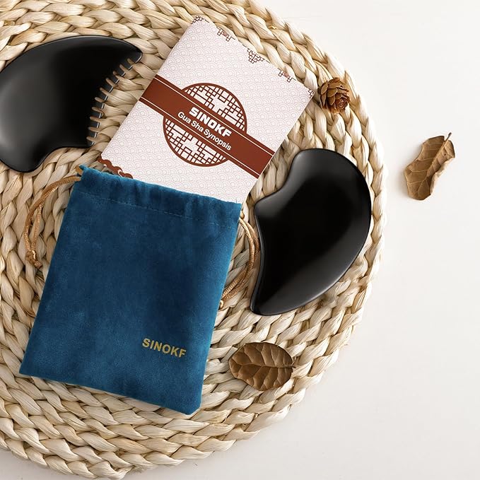 Bian Stone Gua Sha Facial Tools Scraping Massage Face Guasha Board Scraping Plate(Seahorse 2pcs)