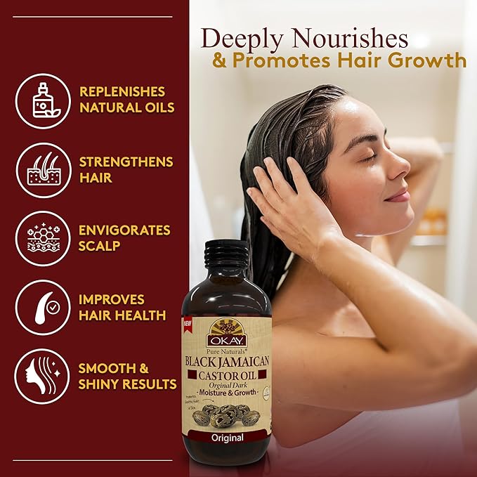 Okay Pure Naturals Black Jamaican Castor Oil - Castor Oil for Hair Growth for Men & Women, Moisture for Skin, Scalp, Eyelashes, Eyebrows - 4 oz Glass Bottle (Pack of 2)