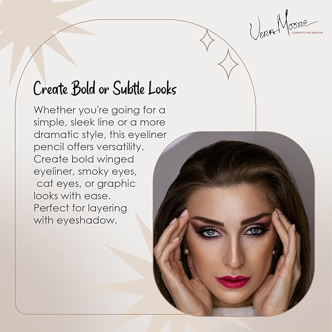 Vera Moore Slim Eye Liner Pencil, Smooth Formula, Hypoallergenic and Vegan, Smudge-Proof and Waterproof Application, Bold and Defined Lines Eyeliner, (0.05 Oz) (Black Eyeliner)