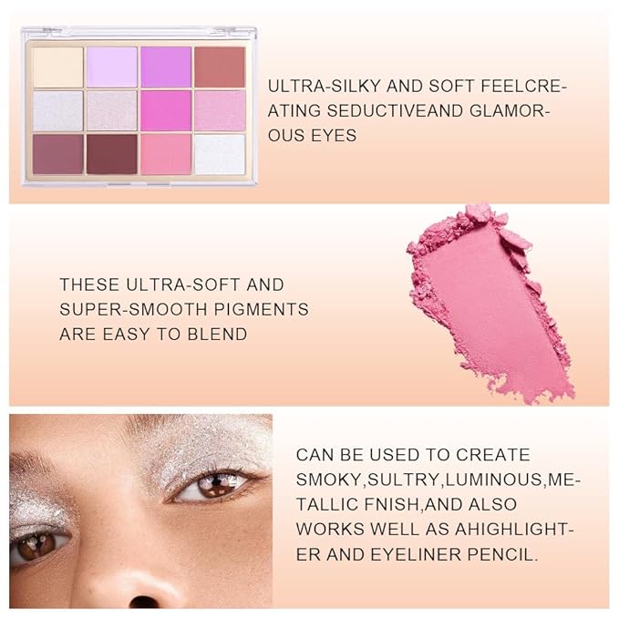 - Multicolor:Eyeshadow palette has a variety of bright colors for you to choose from,you can easily mix and match colors,reasonable color matching,and eyeshadows with high pigmentation will make your eye makeup look more lustrous