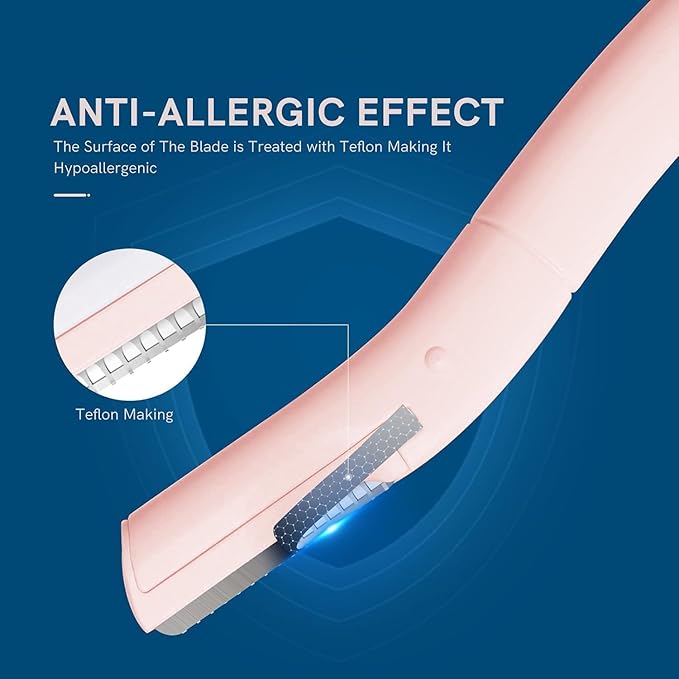 - SAFE AND PRECISE TO USE: This face razor's blade is designed with a macro mesh pattern, which removes eyebrow and lip hair. It is not easy to scratch the skin making it safe to use, and suitable for wide applications. Suitable for different eyebrow shapes. The precision shaver blades easily removes unwanted hair on all area’s of the face whether it’s the forehead, cheeks, lips and chin.
