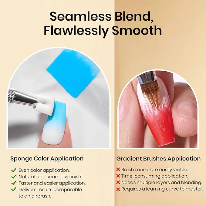 Beetles 150Pcs Soft Nail Sponges for Ombre, White Nail Sponge with Grabbing Pen, Blooming Nails Art Brushes, Gradient Manicure DIY Tools, Professional Accessories Supplies for Home and Salon Use