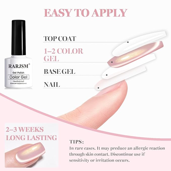 - EASY TO APPLY:This magnetic cat eye gel polish is made with natural resin ingredients, magnetic shimmers, pearl pigments, and a smooth formula, so this gel polish set won't cause smudges cracks or chips. It can last for 21+ days with perfect shine under the proper application
