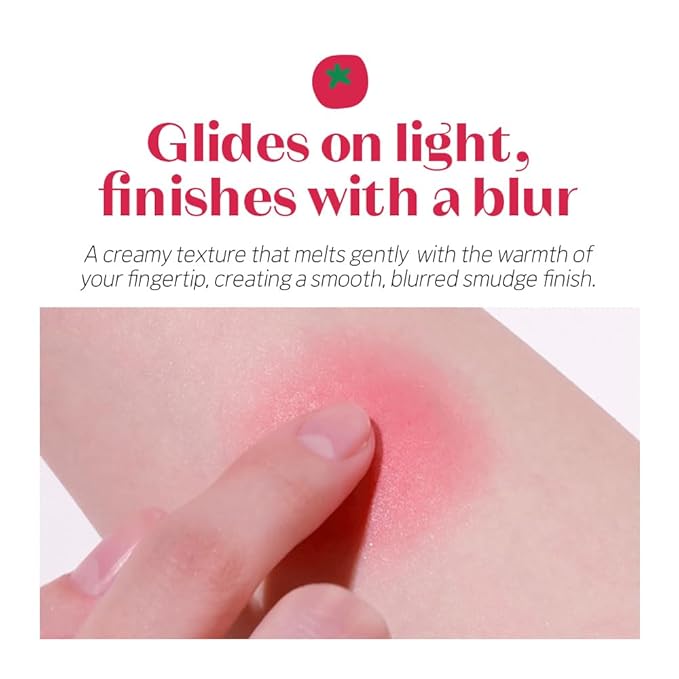 Etude Fruity Lip & Cheek Blur Balm – Sheer Tinted, Moisturizing Cream Balm with Puff, Hydrating Multi-Use Lip & Cheek Color #5 Plump Raspberry 2.3g