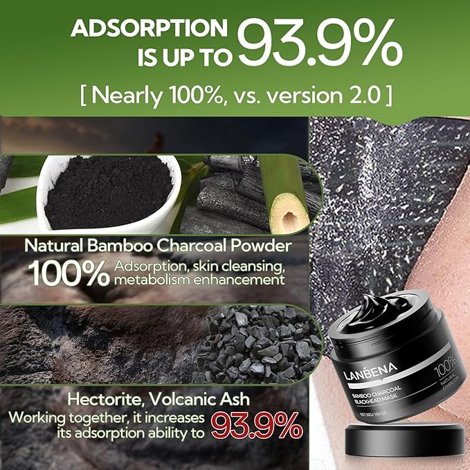 - 93.9% Adsorption Boost: Bamboo Charcoal 3.0 with Hectorite and Volcanic Ash lifts dirt, oil, and blackheads for visibly smoother skin in minutes