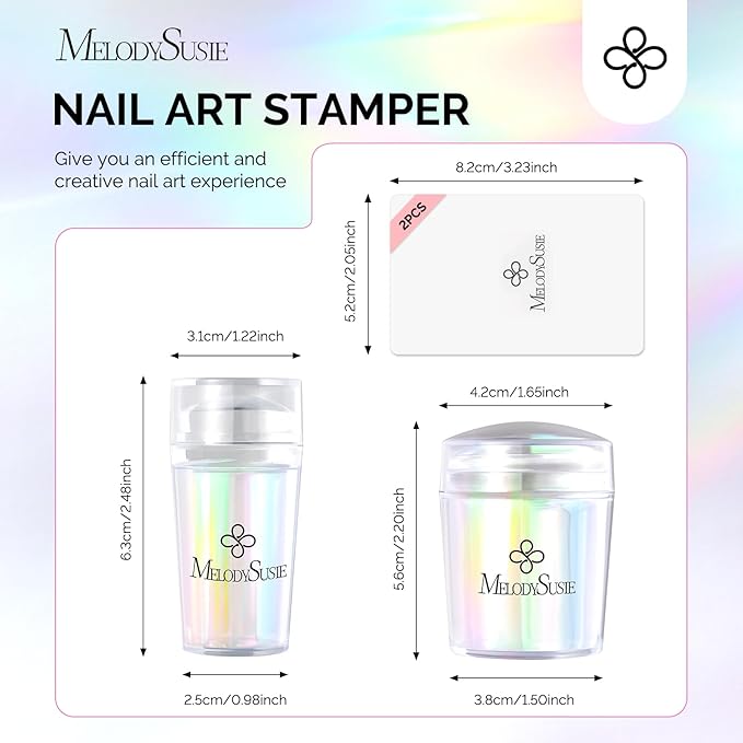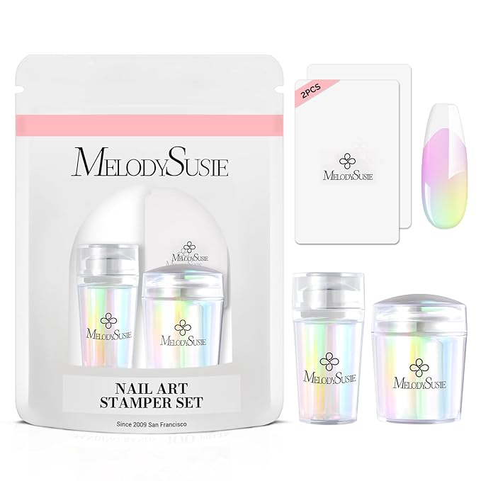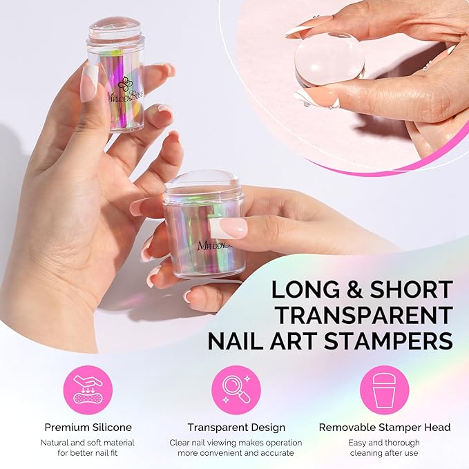 MelodySusie Nail Stamper Kit, 2 Sets Silicone French Tip Upgrade Stamp Tool, Long and Short Stampers with 2PCS Scrapers for French Manicure DIY Home Art Design Salon, Aurora