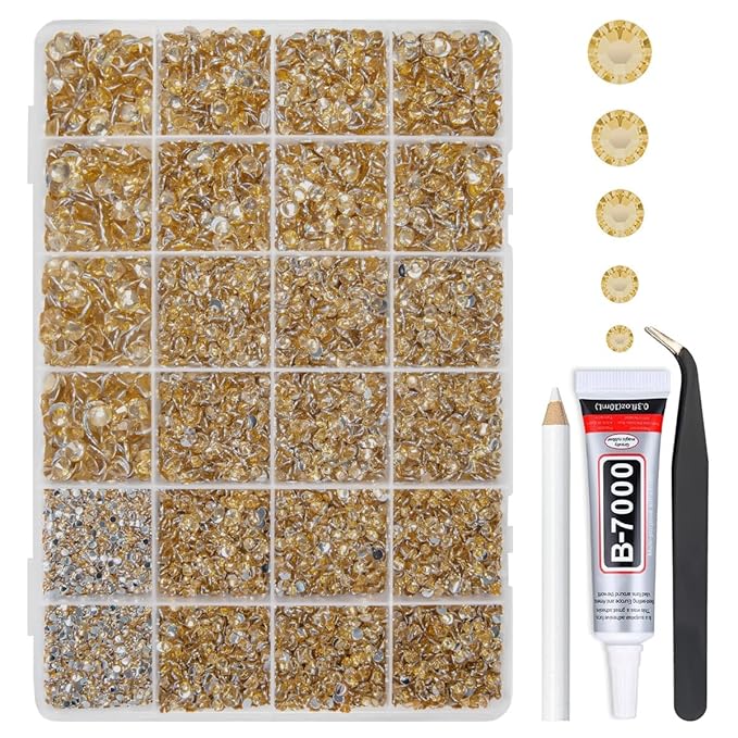 About This ❤【24 Grids Big Box Champagne Golden Resin Crystal Rhinestones w B7000 Glue for Bedazzling Crafting】Flatback Stones Gems Diamonds... Read more