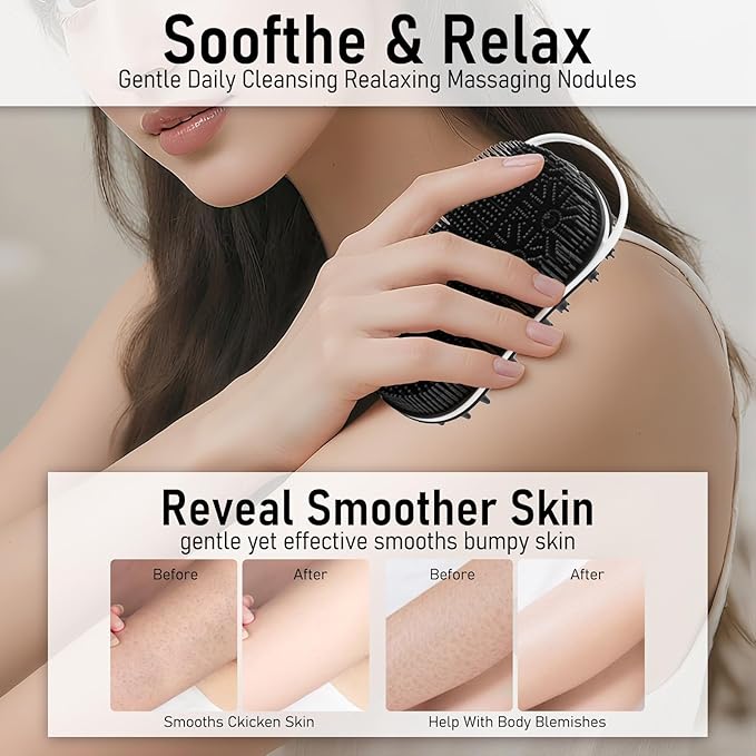 - Upgraded Bristles: Bigger size fits men's hands, firm plastic structure is anti-slip, bristles increase firmness for deep cleaning, groove part better to keep the lather. Use with body subs scrubber or massage oil, message columns provide blood circulation and deep exfoliating to remove makeup, dead skin, especially elbows and ankles area.