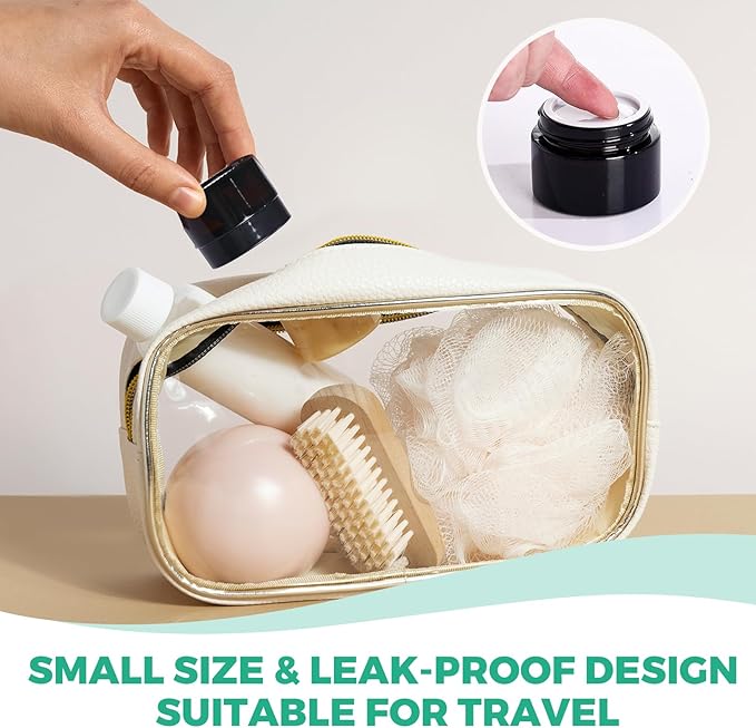 - Leak-Proof & Airtight Design: The black screw-top lids with inner liners create a dual-layer seal. They prevent leaks completely—even when jostled during travel or stored upside down—keeping creams and oils securely contained