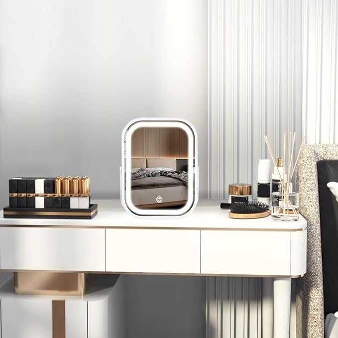 - 【Portable & Compact Design】Perfect for travel, this sleek mirror features a foldable handle and lightweight build, easily fitting into luggage or handbags.Its slim profile ensures hassle-free storage on desktops, vanities, or hotel countertops.