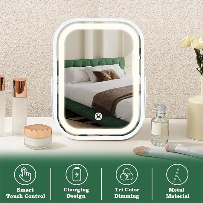 Rechargeable Desk Vanity Makeup Mirror with Lights,8x6 Inch Folding Portable Mirror with Metal Stand Adjustable Rotation,Tavel Make Up Mirror for Table