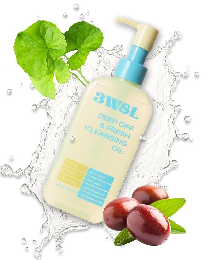 3W8L Deep Off & Fresh Cleansing Oil – Fast emulsifying Korean pore care cleanser, gentle daily makeup & sunscreen remover with Jojoba & Centella, dissolves sebum & blackheads, hydrating fresh finish