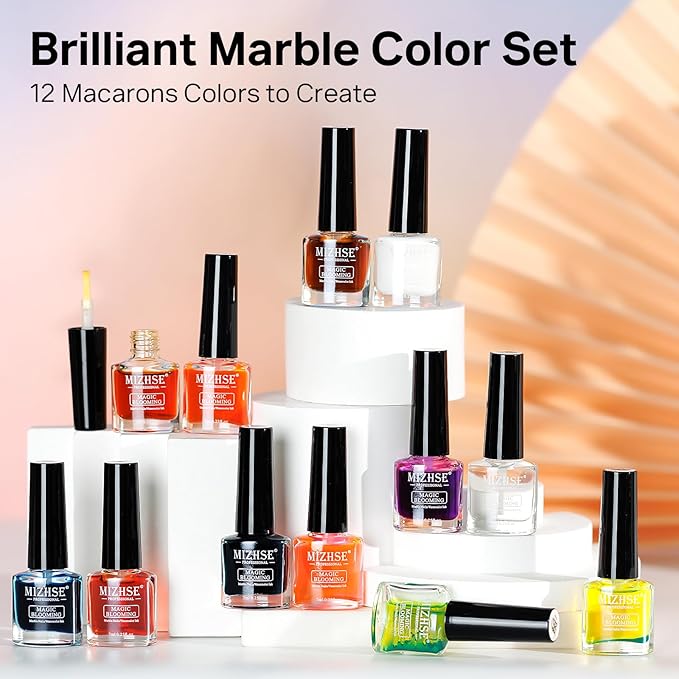 MIZHSE Marble Ink for Nails, 12Pcs Macarons Colors Marble Nail Polish Set Suumer Nail Ink Blooming Gel Watercolor Nail Polish for Nail Art Design Manicure at Home