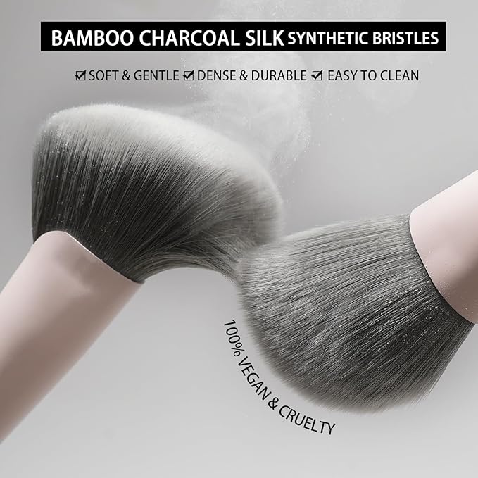 - ❤【Vegan and Cruelty-Free】: We use certified vegan and eco-friendly materials to make this makeup brush set. 100% cruelty-free vegan fibers feature more uniform fibers and less breakage. They work perfectly together to increase softness, reduce hair loss, and ensure maximum brush lifespan. The brush can be used with cream, powder, or liquid formulas.