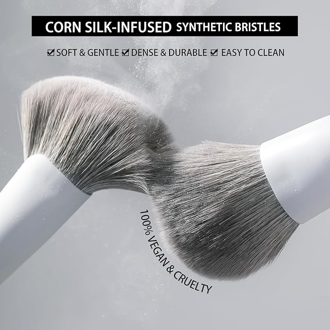 - ❤【Vegan and Cruelty-Free】: We use certified vegan and eco-friendly materials to make this makeup brush set. 100% cruelty-free vegan fibers feature more uniform fibers and less breakage. They work perfectly together to increase softness, reduce hair loss, and ensure maximum brush lifespan. The brush can be used with cream, powder, or liquid formulas.