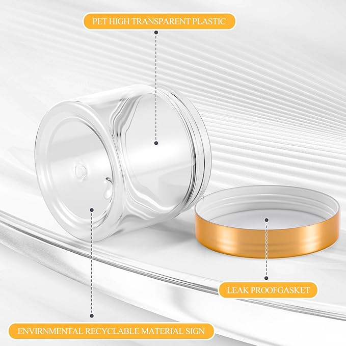 - Quality Material: the plastic jars with lids are made of quality plastic, without odd smell, does not contaminate your skincare products, stable, high temperature resistance, sealed storage and leak proof