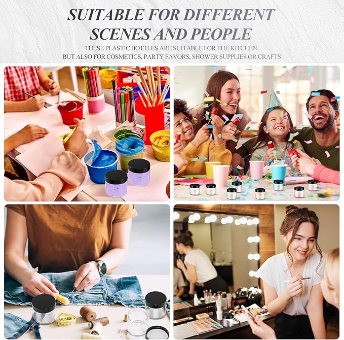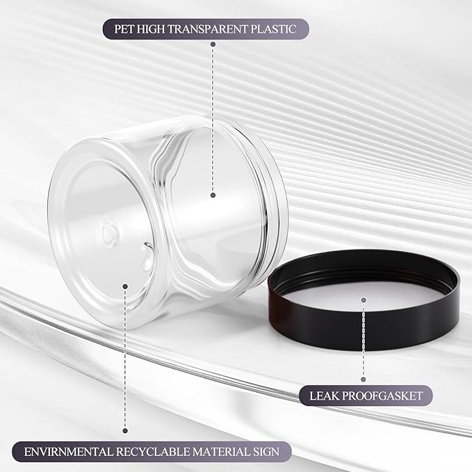 - Quality Material: the plastic jars with lids are made of quality plastic, without odd smell, does not contaminate your skincare products, stable, high temperature resistance, sealed storage and leak proof