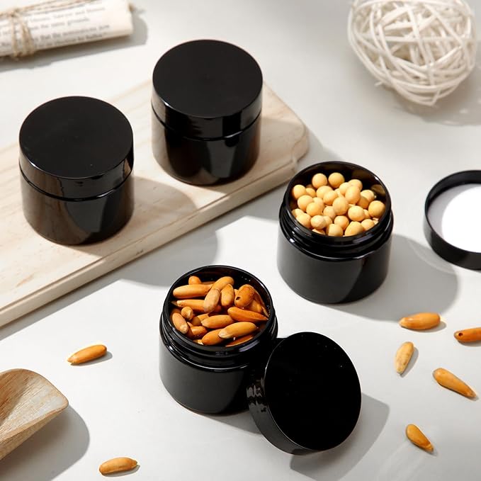 SATINIOR 36 Pieces 2 oz Plastic Jars with Lids Wide Mouth Airtight Reusable Container Acrylic Cosmetic Small Jars for Lotions Ointments Travel Toiletries Creams Make up Storage(Opaque Black)