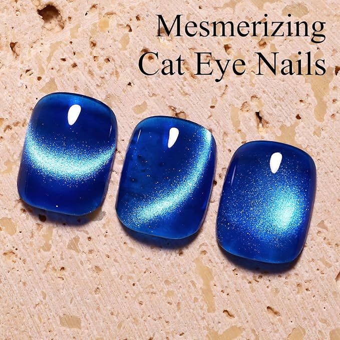 - 【TOXIN FREE Glitter Gel Polish】Our navy blue cat eye gel polish are made from natural resin and Toxin Free ingredients,featuring health, and low odor, Gel manicure kit only used for nail and non-direct contact with mouth,eyes. Wash immediately if contact occurs. Keep the products away from the pregnant and the kids.