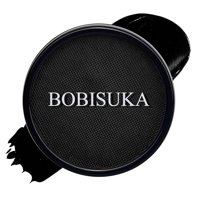 BOBISUKA Black Face Body Paint, Water-Based Face Painting Kit & Body Paints, Kids Adults Facepaint for Halloween Clown Goth Skeleton Skull SFX Makeup, Costume Cosplay Party Art Theater & Stage