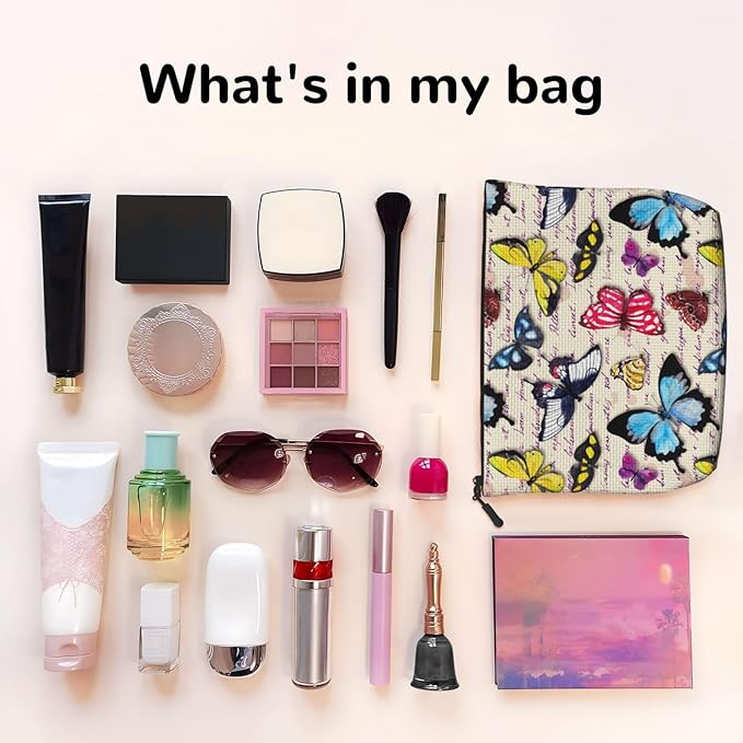 MOLAIGIN Butterfly Beautiful Vintage Butterflies Cosmetic Bag For Women, Travel Makeup Bag, Toiletry Zipper Bag, Large Capacity Aesthetic Cases