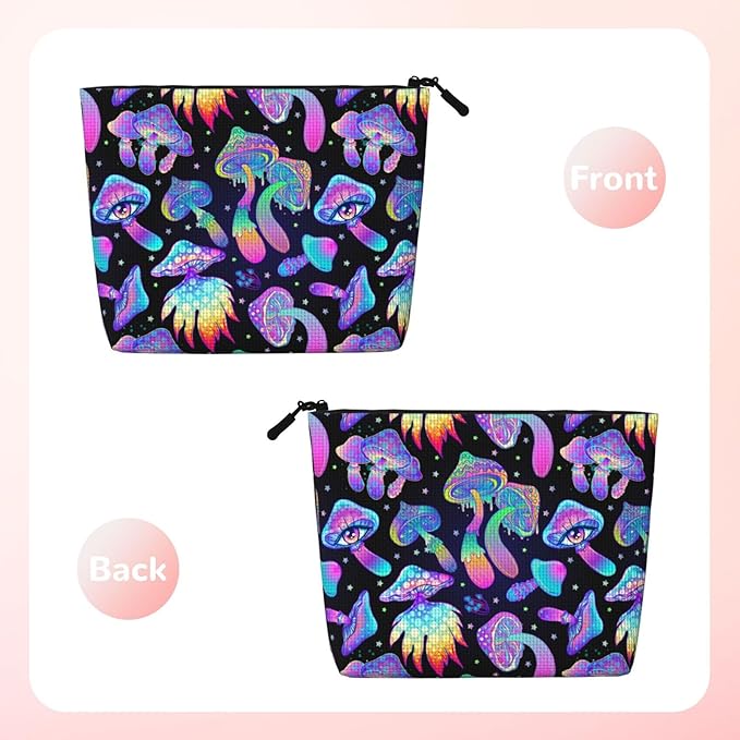 MOLAIGIN Magic Psychedelic Mushrooms And Skulls Cosmetic Bag For Women, Travel Makeup Bag, Toiletry Zipper Bag, Large Capacity Aesthetic Cases