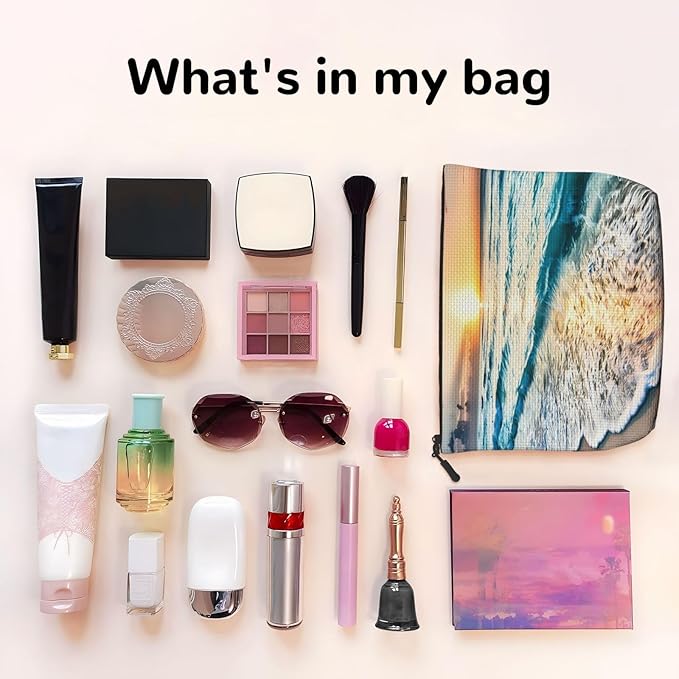 MOLAIGIN Beach Ocean Sun Set Landscape Cosmetic Bag For Women, Travel Makeup Bag, Toiletry Zipper Bag, Large Capacity Aesthetic Cases