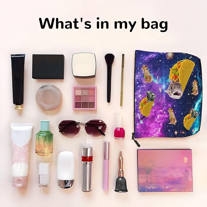 MOLAIGIN Blue Purple Galaxy Cat Taco Cosmetic Bag For Women, Travel Makeup Bag, Toiletry Zipper Bag, Large Capacity Aesthetic Cases