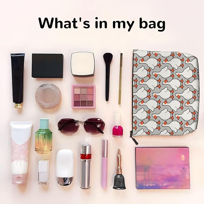 MOLAIGIN White Black Gooses Cosmetic Bag For Women, Travel Makeup Bag, Toiletry Zipper Bag, Large Capacity Aesthetic Cases