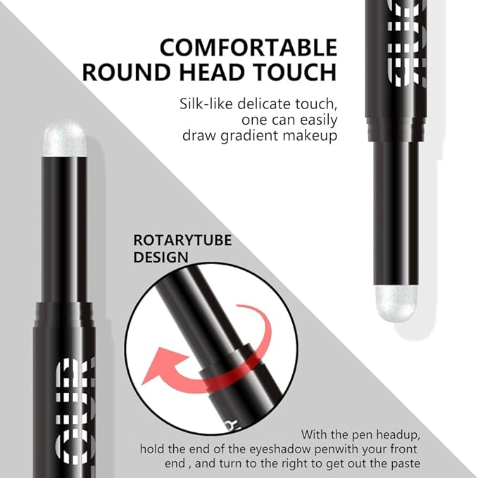 - Silky & Conveniently: Goes on smoothly like silk without clumping,skipping or smudging,perfect for sculpting, shading & defining,not exaggerated glittery.Thick-end eyeshadow crayon for quick-applying on large area,portable and let you to make up & touch up outside so easy.