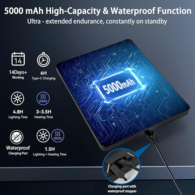 - Rechargeable 5000mAh Large Capacity Battery & IPX7 Water-Resistant: This anti-fog bathroom shower mirror for shaving has a built-in 5000mAh rechargeable lithium battery, which is equivalent to 18 AAA batteries. Just charge once and it can be used for up to 2-4 weeks depending on usage. When the battery is low, the red indicator light flashes, please charge it in time (charging cable included, charger not included). In addition, this antifog mirror for shower and charging port are both waterproof and can be used in the shower. Note: Please do not turn on the defog function during charging, but you can use the LED light function.