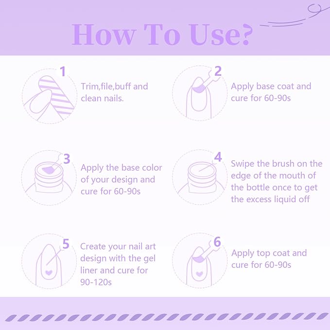 - You’ll Received:20Pcs Nail Art Gel Liner Paint Set.With the built-in thin brush, you don't have to get out your set of brushes for adding details and lines. of nail manicure decoration, especially for nail art manicures. It creates a gorgeous momentum for your nails.