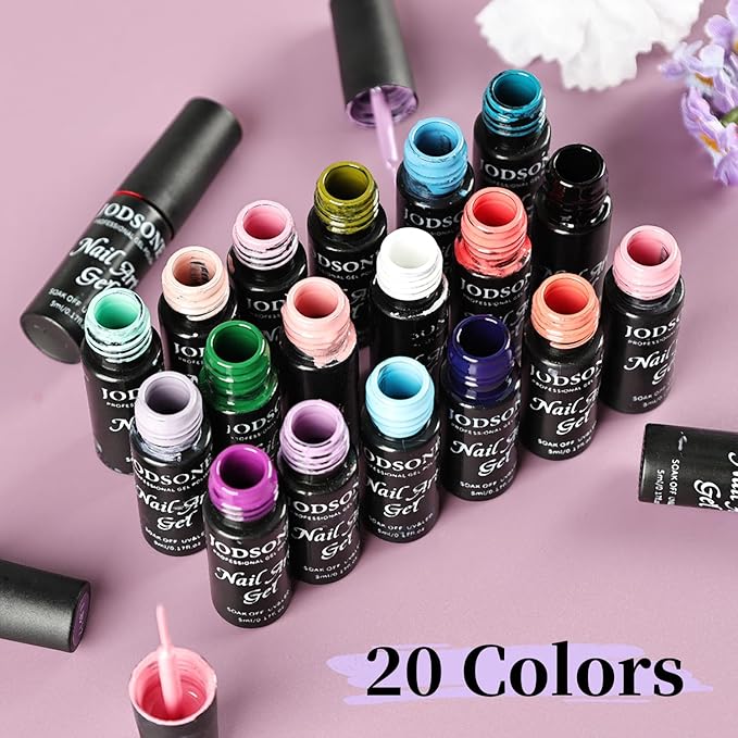 JODSONE Gel Polish Nail Art Gel Liner Set 20 Colors Red Pink Blue Purple with Thin Brush Need U V Lamp Cured Gift for Girls at Home Salon Design