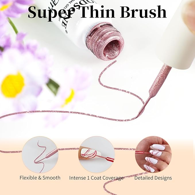 - You'll Received:10Pcs Red Black Pink Glitter Nail Art Gel Liner Paint Set.With the built-in thin brush, you don't have to get out your set of brushes for adding details and lines. of nail manicure decoration, especially for nail art manicures. It not only creates a gorgeous momentum for your nails.