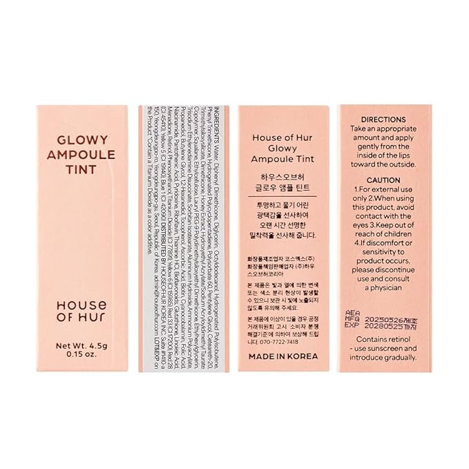 House of Hur Glowy Ampoule Tint with Honey & Vitamins | Hydrating & Vibrant Lip Color (4 Colors) - Deep Rose