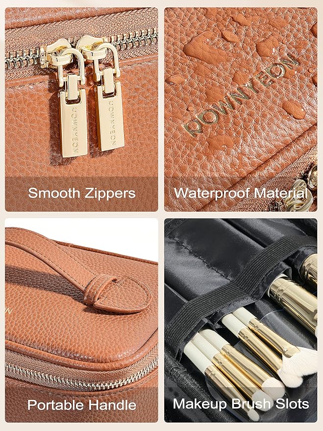 Cosmetic Bag,ROWNYEON Makeup Bag,Portable Makeup Train Case,Travel Toiletry Bag Case Organizer for Women,Brown