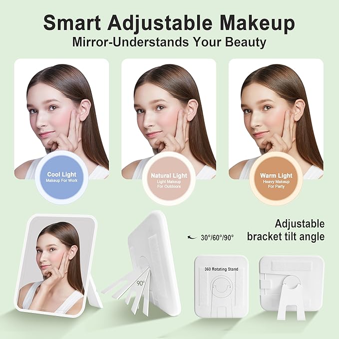 - 360 DEGREE ROTATING MIRROR: The mirror is designed to be flexible and supports 360 degree rotation. No matter from which angle you want to observe your makeup or need to adjust the direction of the mirror, it can be easily realized.