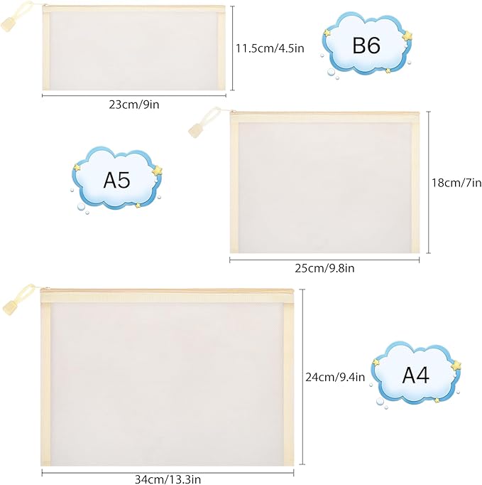 - Three Sizes: A4: 34 x 24 cm / 13.3 x 9.4 inches; A5: 25 x 18 cm / 9.8 x 7 inches; B6: 23 x 11.5 cm / 9 x 4.5 inches, three sizes can meet your different needs.