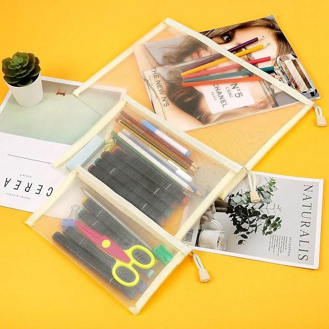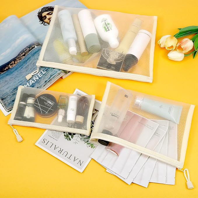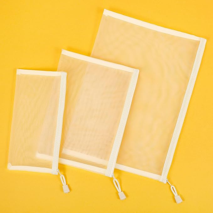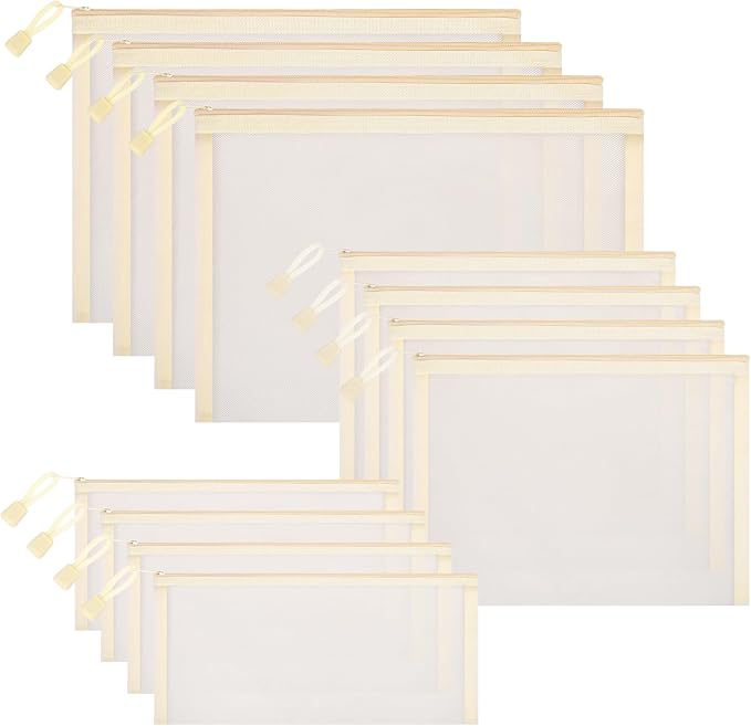 12 Pieces Zipper Nylon Mesh Pouch, Mesh Cosmetic Bags Makeup Bags Pencil Case, Multipurpose Travel Bags for Cosmetic School Office Supplies and Travel Accessories (Beige, Assorted Sizes)