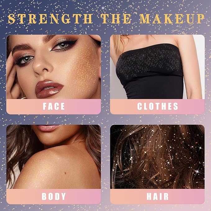 - Versatile Sparkle: Our body glitter spray for women is your go-to for adding shine anywhere—hair, face, neck, legs, or even your outfit! Perfect for birthday celebrations, masquerade balls, nightclubs, festive events, stage performances, weddings, dances, Halloween, Christmas, and more. Wherever the occasion, let your sparkle steal the show!